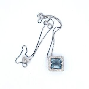 Collana e pendente in oro bianco 18 Kt con Topazio azzurro e diamanti brillanti