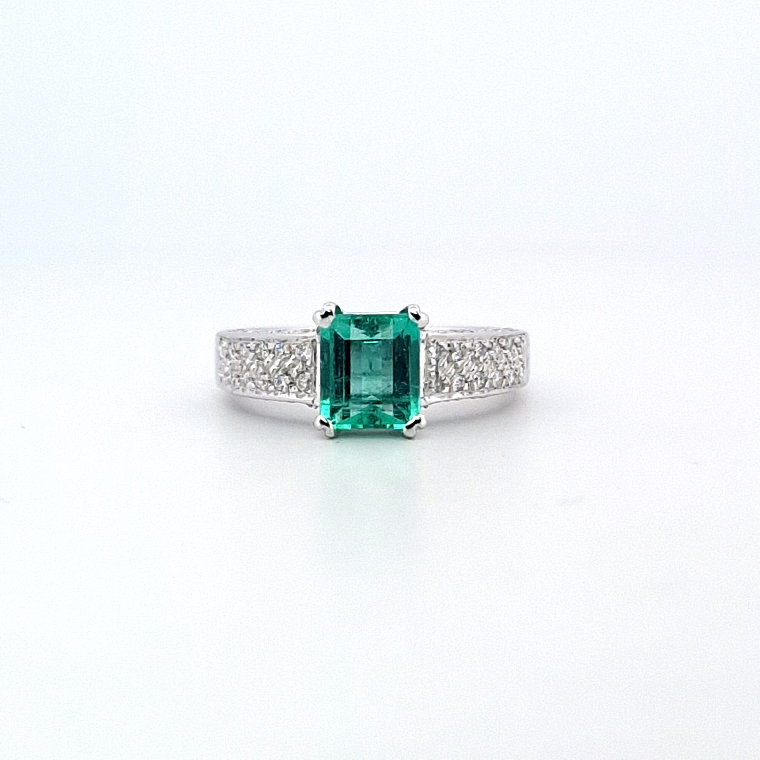 Il protagonista di questo anello è uno splendido smeraldo da 1.50 carati. La sua luminosità e il suo colore intenso catturano immediatamente lo sguardo, regalando un tocco di unicità e raffinatezza. Lo smeraldo è sapientemente incastonato per evidenziarne l’incredibile bellezza.
