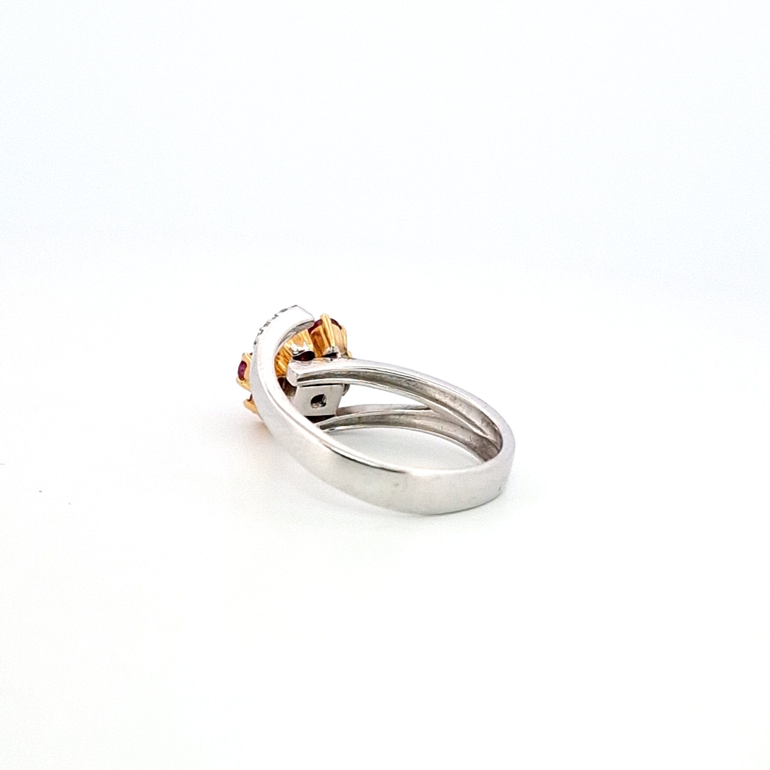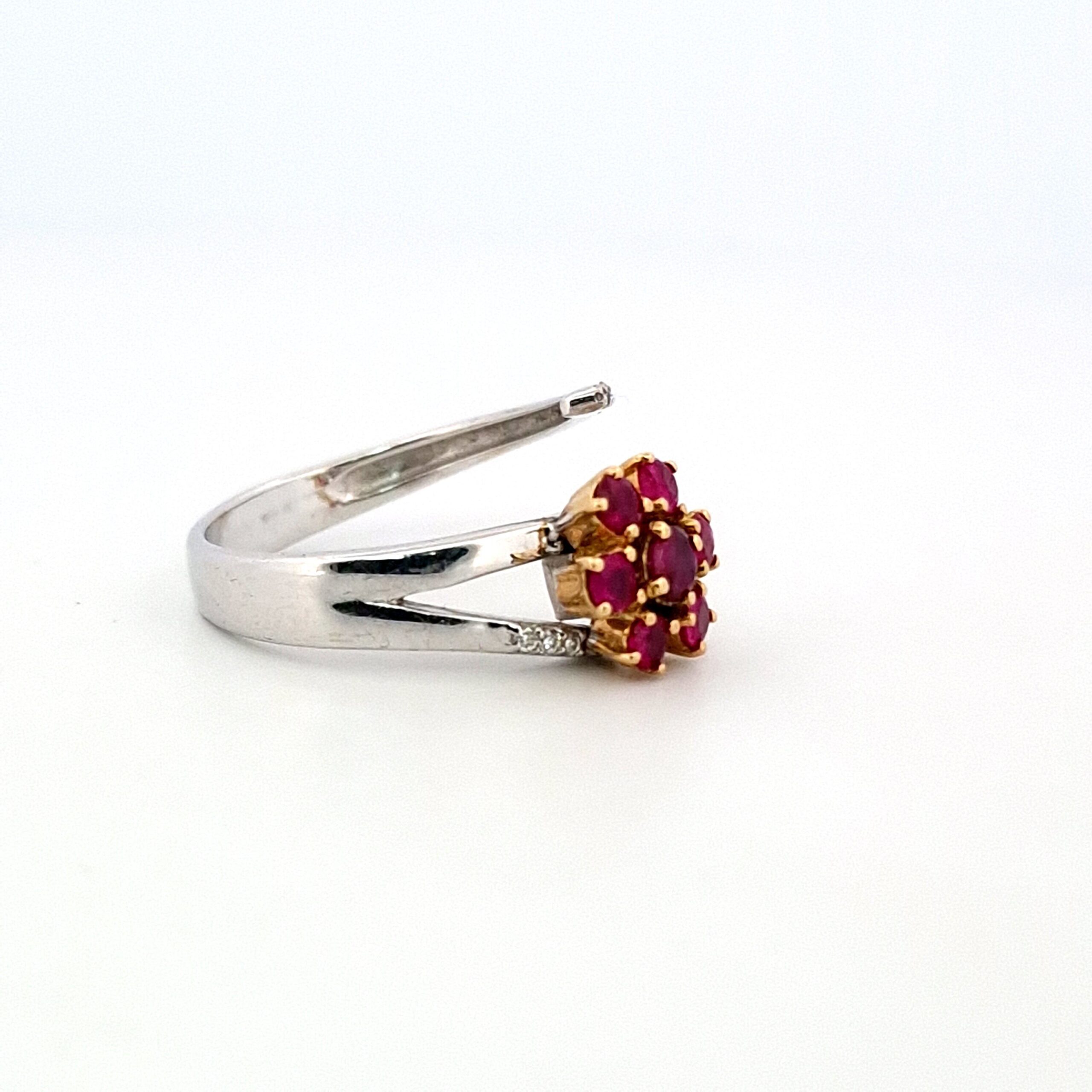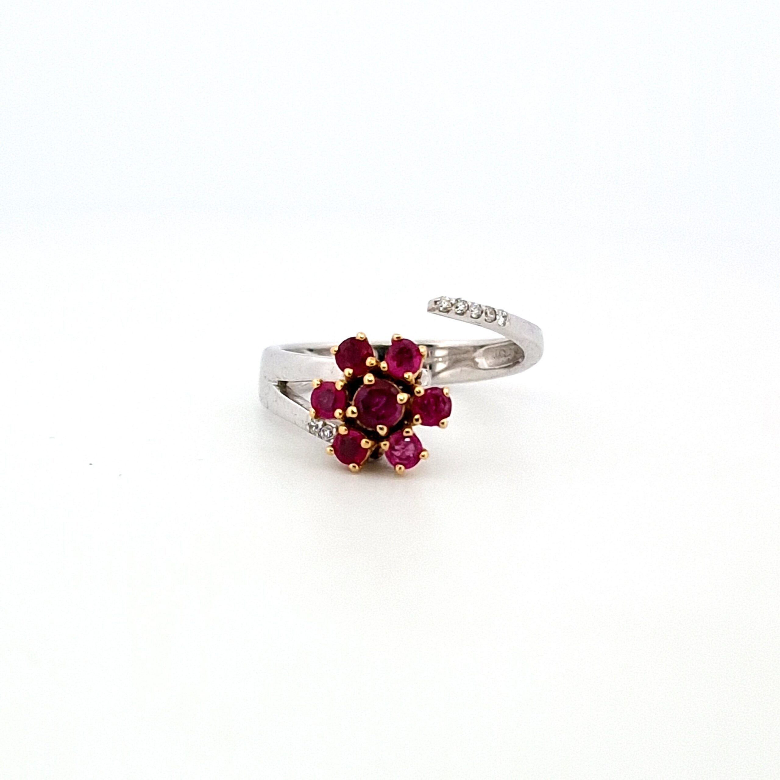 Scopri l’incredibile fascino di questo anello in oro bianco e giallo 18Kt, progettato per esaltare la tua eleganza con un design unico. Questo gioiello presenta una combinazione incantevole di rubini e diamanti brillanti naturali, offrendoti uno stile sofisticato che si adatta perfettamente a ogni occasione speciale. Ideale per completare il tuo look o per essere donato come simbolo di eterno amore e raffinatezza.