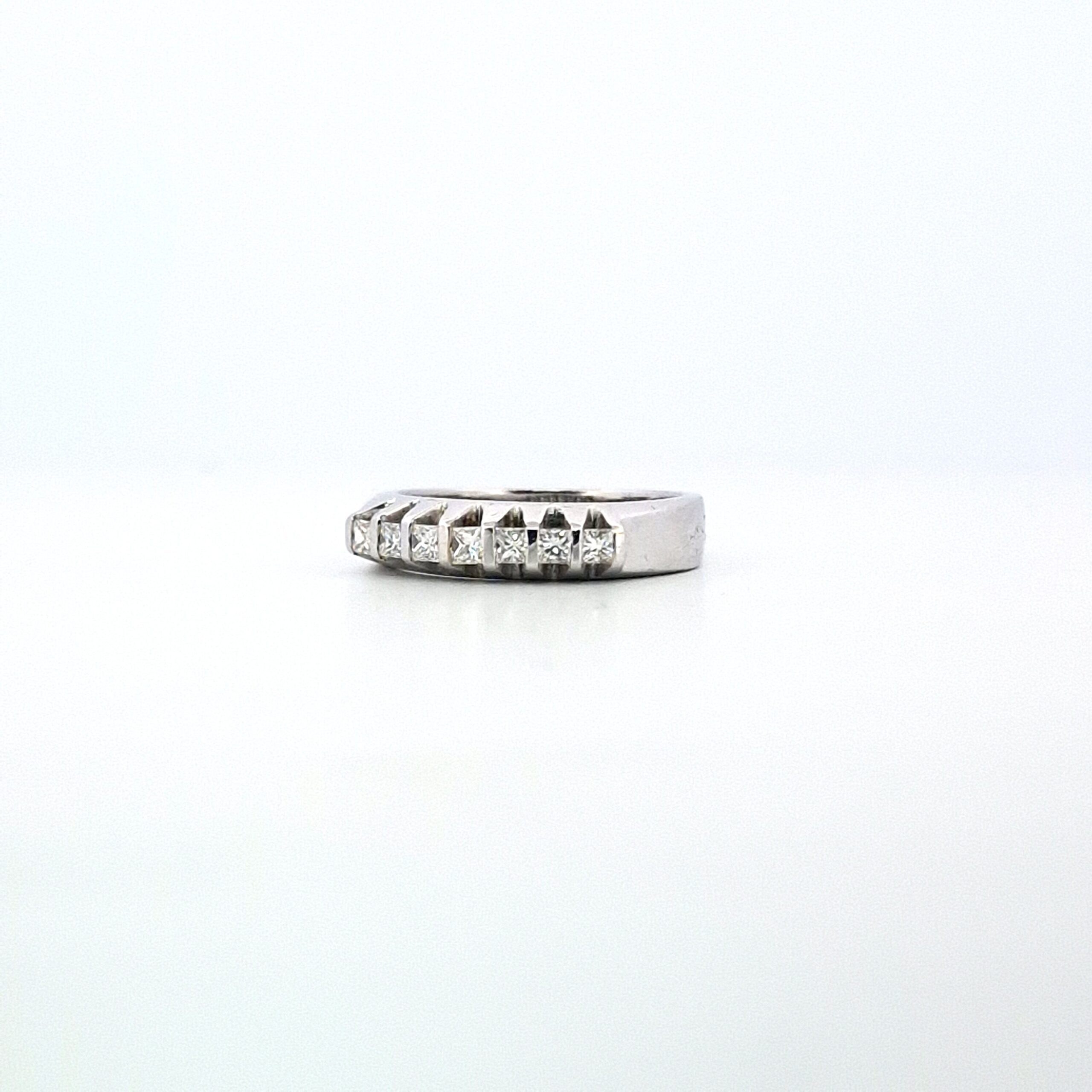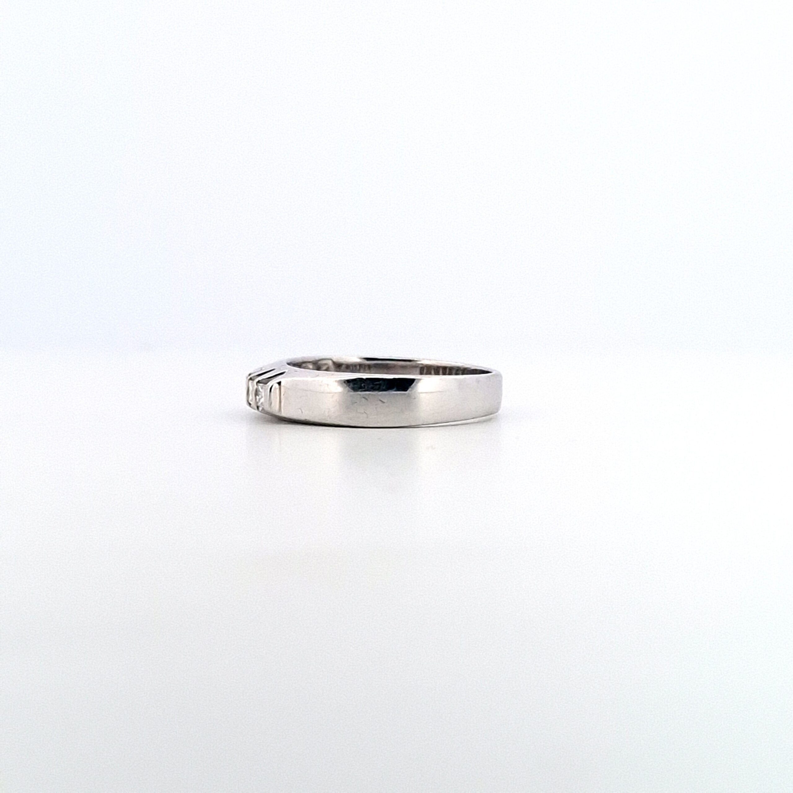 Anello veretta in oro bianco da 18Kt con 7 diamanti dal peso complessivo di 0.31 ct, misura italiana 13 – misura europea 53